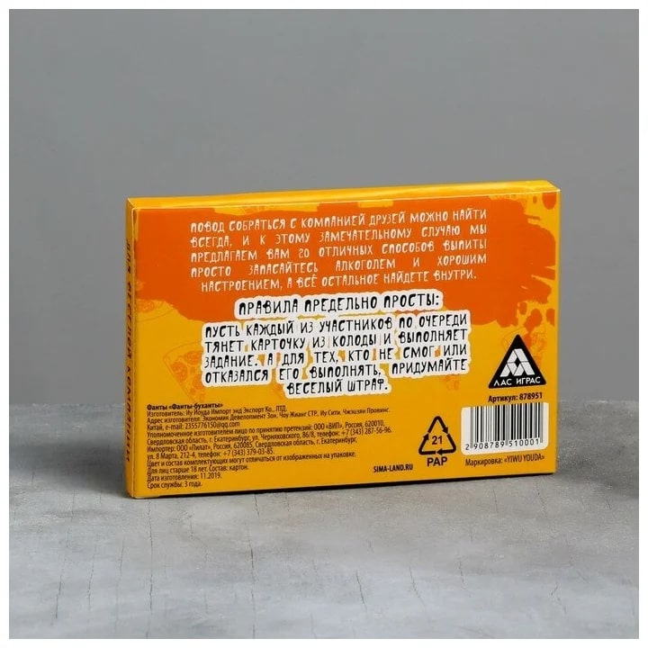 Купить игра для компании "фанты буханты" 20 карт от 100 руб. с доставкой до пункта выдачи в Кашире. Интернет магазин ДекаМаркет. Оплата при получении.